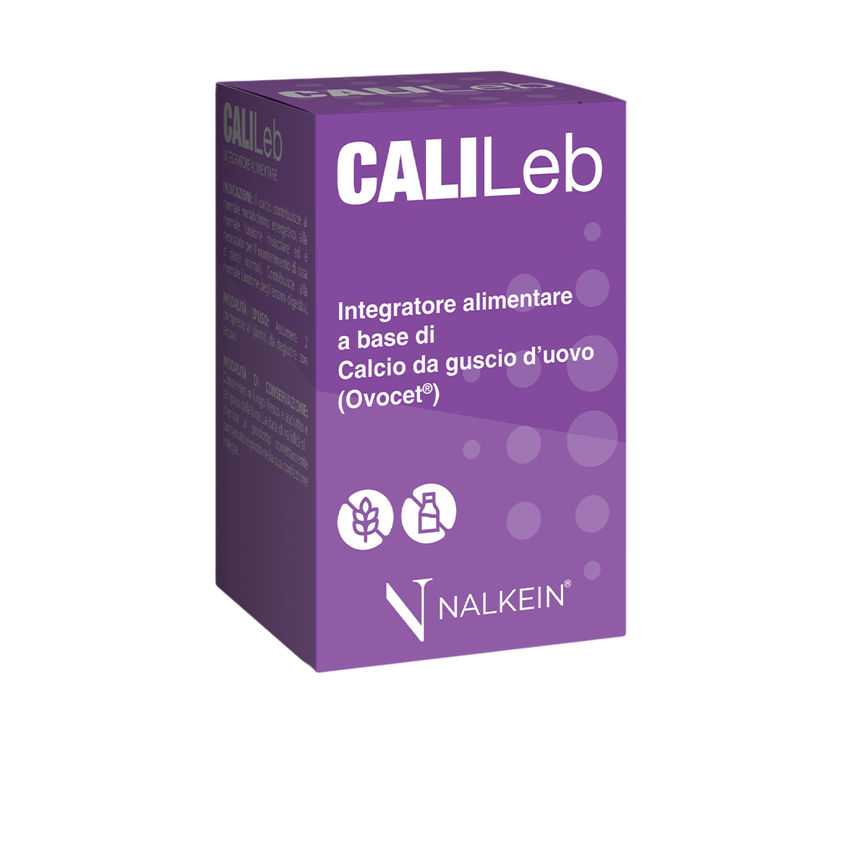 Calcio carbonato da guscio d’uovo polvere (Ovocet®); Agente di carica: cellulosa microcristallina; Agenti antiagglomeranti: biossido di silice, sali di magnesio degli acidi grassi.