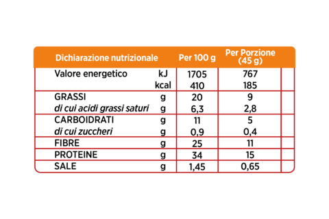 Può contenere tracce di frutta a guscio, arachidi, lupini, soia, sesamo e senape.